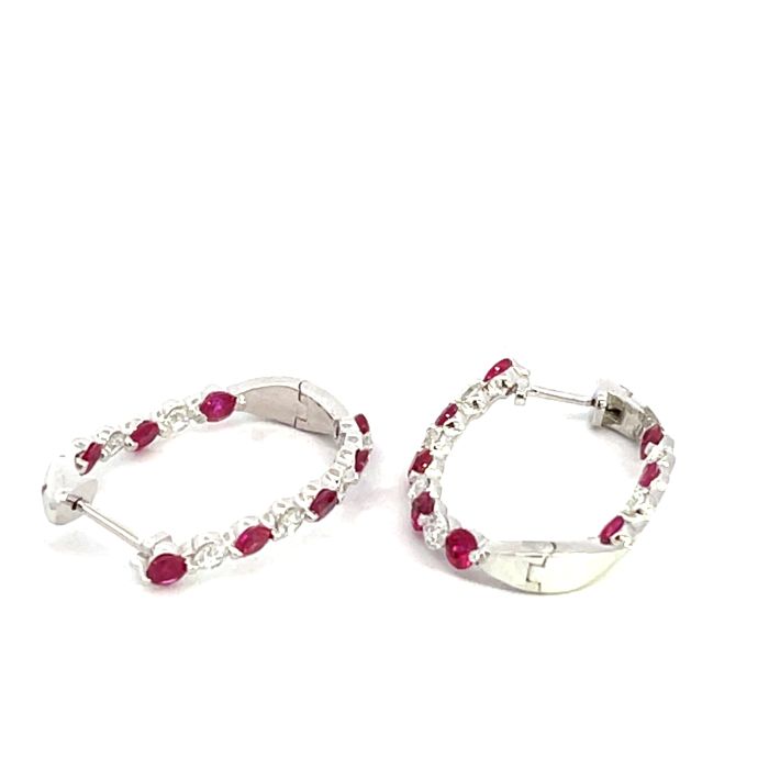 14K White Gold Earrings with 1.15ctw Diamonds and 2.41ctw RubiesProduct Family: Earrings Metal Type: 14K White Gold Color: GH Clarity: SI Gram Weight: 7.3 Diamond Total Weight: 1.15 Gem Stone Type: Ruby Gem Stone Weight: 2.41 Gender: Women's