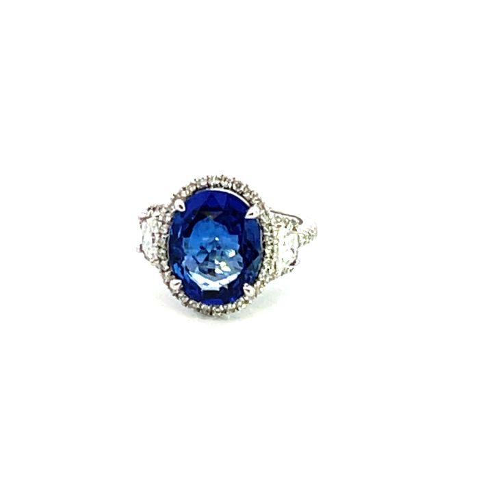 950 Platinum Gold Ring with 1.02ctw Diamonds and 5.59ctw Sapphires (Certified)Product Family: Rings Metal Type: 950 Platinum Color: GH Clarity: SI Gram Weight: 8 Diamond Total Weight: 1.02 Gem Stone Type: Sapphire Gem Stone Weight: 5.59 Gender: Women's