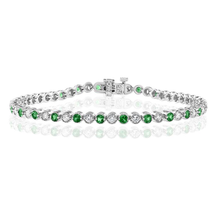 14K White Gold Bracelet with 1.32ctw Diamonds and 1.16ctw EmeraldsProduct Family: Bracelets Metal Type: 14K White Gold Color: GH Clarity: SI Gram Weight: 8.4 Diamond Total Weight: 1.32 Gem Stone Type: Emerald Gem Stone Weight: 1.16 Gender: Women's