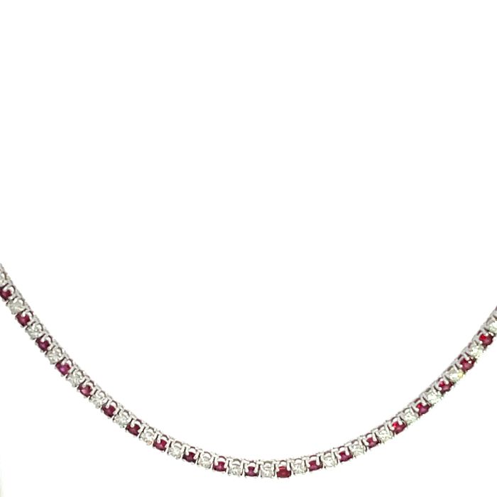 14K White Gold Necklace with 4.13ctw Diamonds and 4.60ctw Rubies