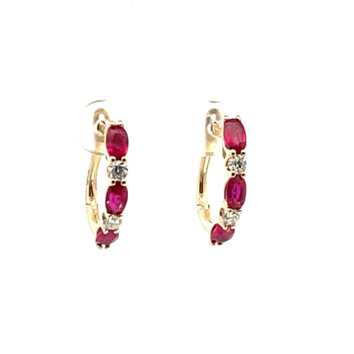 14K Yellow Gold Earrings with 0.36ctw Diamonds and 1.63ctw RubiesProduct Family: Earrings Metal Type: 14K Yellow Gold Color: GH Clarity: SI Gram Weight: 3.1 Diamond Total Weight: 0.36 Gem Stone Type: Ruby Gem Stone Weight: 1.63 Gender: Women's