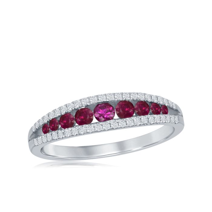 18K White Gold Ring with 0.16ctw Diamonds and 0.41ctw RubiesProduct Family: Rings Metal Type: 18K White Gold Color: GH Clarity: SI Gram Weight: 3.2 Diamond Total Weight: 0.16 Gem Stone Type: Ruby Gem Stone Weight: 0.41 Gender: Women's