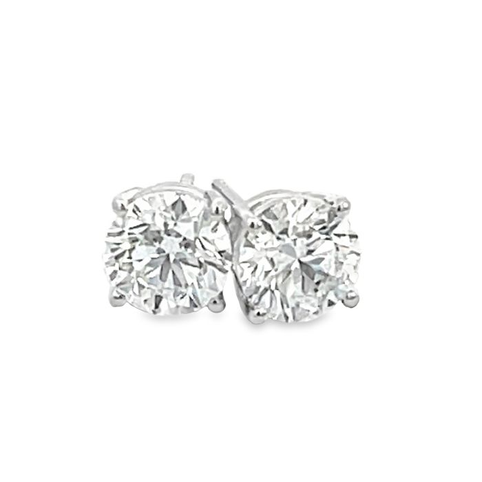 Need a custom version of 14K White Gold 4.08ctw Diamond studs with 2.05ctw Rd JI1 EXEXEX Med GIA 1232677143 and 2.03ctw Rd ISI2 VGGDEX F GIA 5172444281?