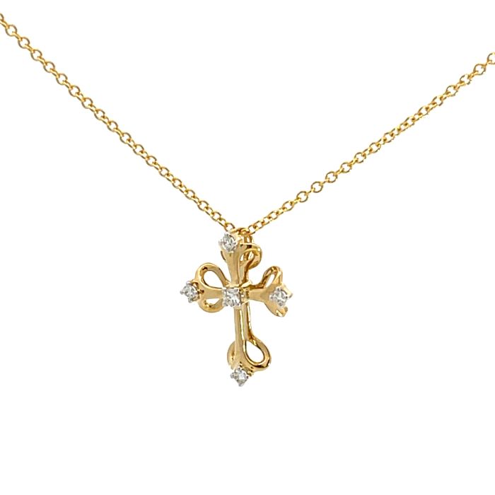 14K Yellow Gold Gothic Diamond Cross Pendant with 0.10ctw DiamondsProduct Family: Necklaces Metal Type: 14K Yellow Gold Color: I Clarity: SI2 Gram Weight: 2.68 Diamond Total Weight: 0.1 Gender: Women's