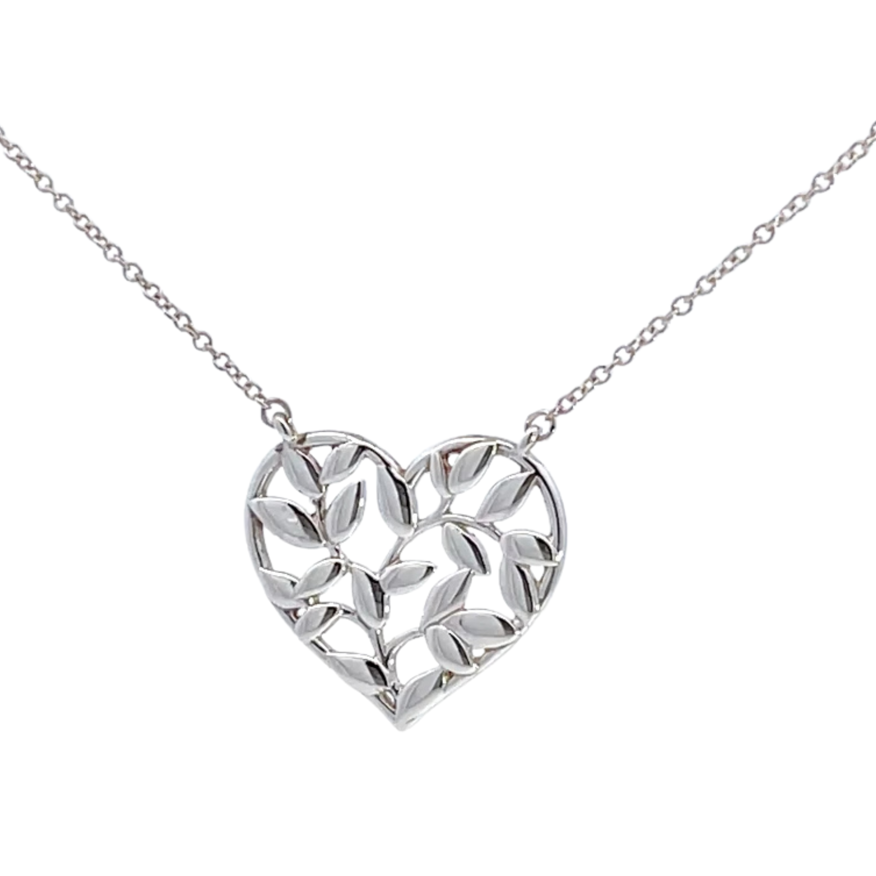 Tiffany & Co. Silver Paloma Picasso Olive Leaf Heart Pendant Necklace