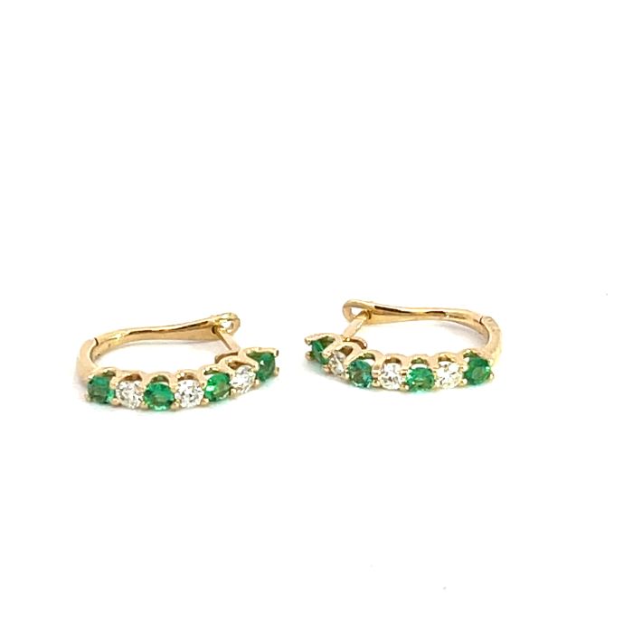 14K Yellow Gold Earrings with 0.60ctw Diamonds and 0.60ctw Emeralds