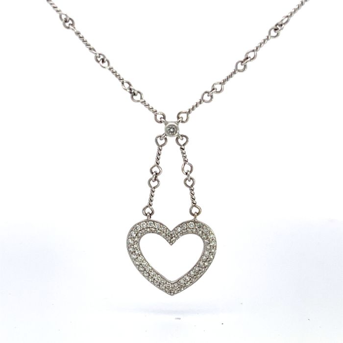 18K White Gold 0.85ctw Diamond Heart NecklaceProduct Family: Necklaces Metal Type: 18K White Gold Color: GH Clarity: I1 Gram Weight: 9.8 Diamond Total Weight: 0.85 Gender: Women's