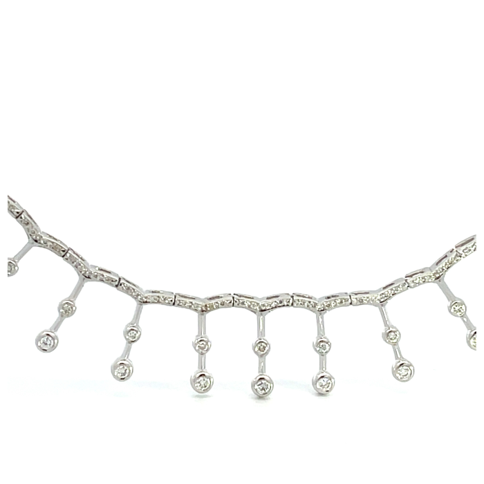 18K White Gold 1 1/2ctw Diamond Dangle NecklaceProduct Family: Necklaces Metal Type: 18K White Gold Color: G Clarity: I1 Gram Weight: 25.8 Diamond Total Weight: 1.5 Gender: Women's