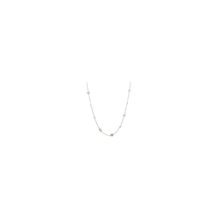 14K White Gold 3.43ctw Diamond by the Yard Mix Shape Necklace 18" 20 stations