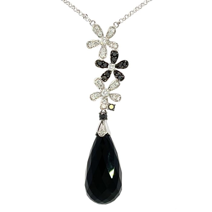 14K White Gold Black Agate and Diamond Necklace with 0.44ctw Diamonds and 0.32ctw Black Diamonds