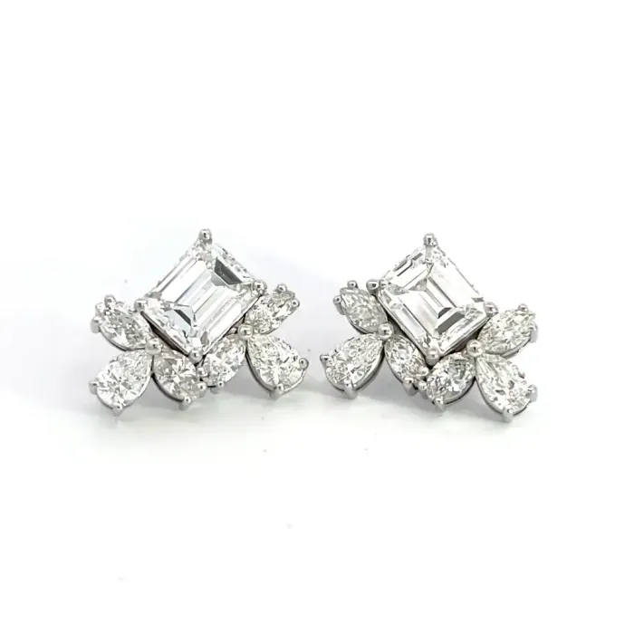 18K WG 6.13ctw Diamond Mix Shape Fashion Earrings with GIA 2231788120 Emerald 1.83 EVS1 VGGD None and GIA 5232898084 Emerald 1.97 EVS2 VGGD None and 2.33ctw Marquise and Pear DiamondsProduct Family: Earrings Metal Type: 18K White Gold Color: EF Clarity: VS Gram Weight: 6.83 Diamond Total Weight: 6.13 Stone 1: GIA 5232898084 Emerald 1.97 EVS2 VGGD None GIA Report: VIEW Stone 2: GIA 2231788120 Emerald 1.83 EVS1 VGGD None GIA Report: VIEW Gender: Women's