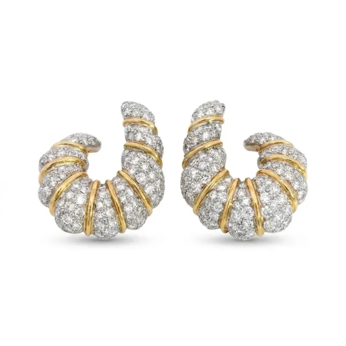 18K Yellow Gold and White Gold 7/1ctw Pave EarringsProduct Family: Earrings Metal Type: 18K Multi-Tone Gold Color: G Clarity: VS2 Gram Weight: 33.2 Diamond Total Weight: 7 Gender: Women's