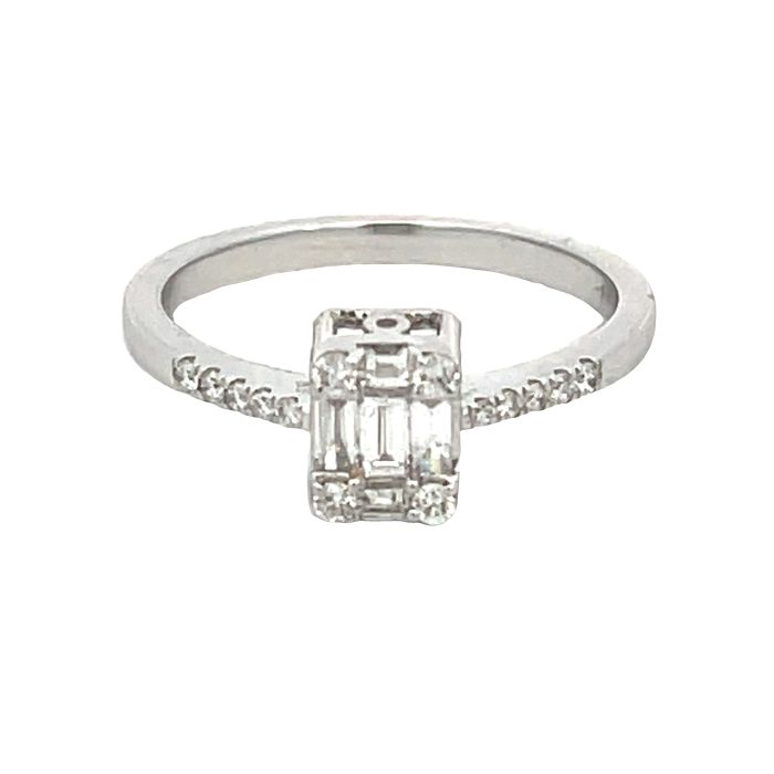 18K White Gold 0.32 CT Diamond Engagement RingProduct Family: Rings Metal Type: 18K White Gold Color: GH Clarity: SI2 Gram Weight: 2.9 Diamond Total Weight: 0.32 Gender: Women's
