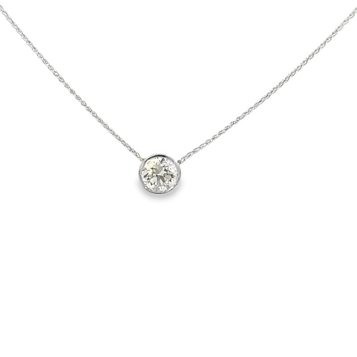 14K White Gold 1 1/2ctw Diamond Bezel Solitaire NecklaceProduct Family: Necklaces Metal Type: 14K White Gold Color: P Clarity: VS1 Gram Weight: 3.6 Diamond Total Weight: 1.5 Gender: Women's
